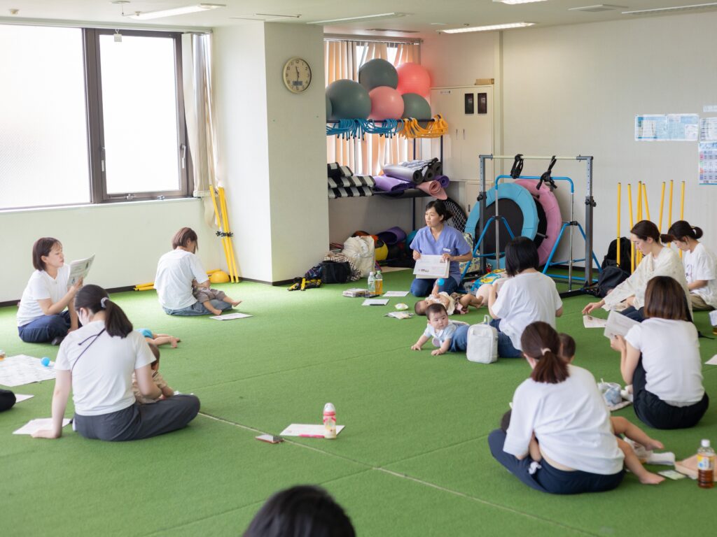 9月4日、岩手県盛岡市の体操教室で開催された「赤ちゃん期からの歯並び育児」講座では、生後5か月から歩き始める頃の親子13組が参加。