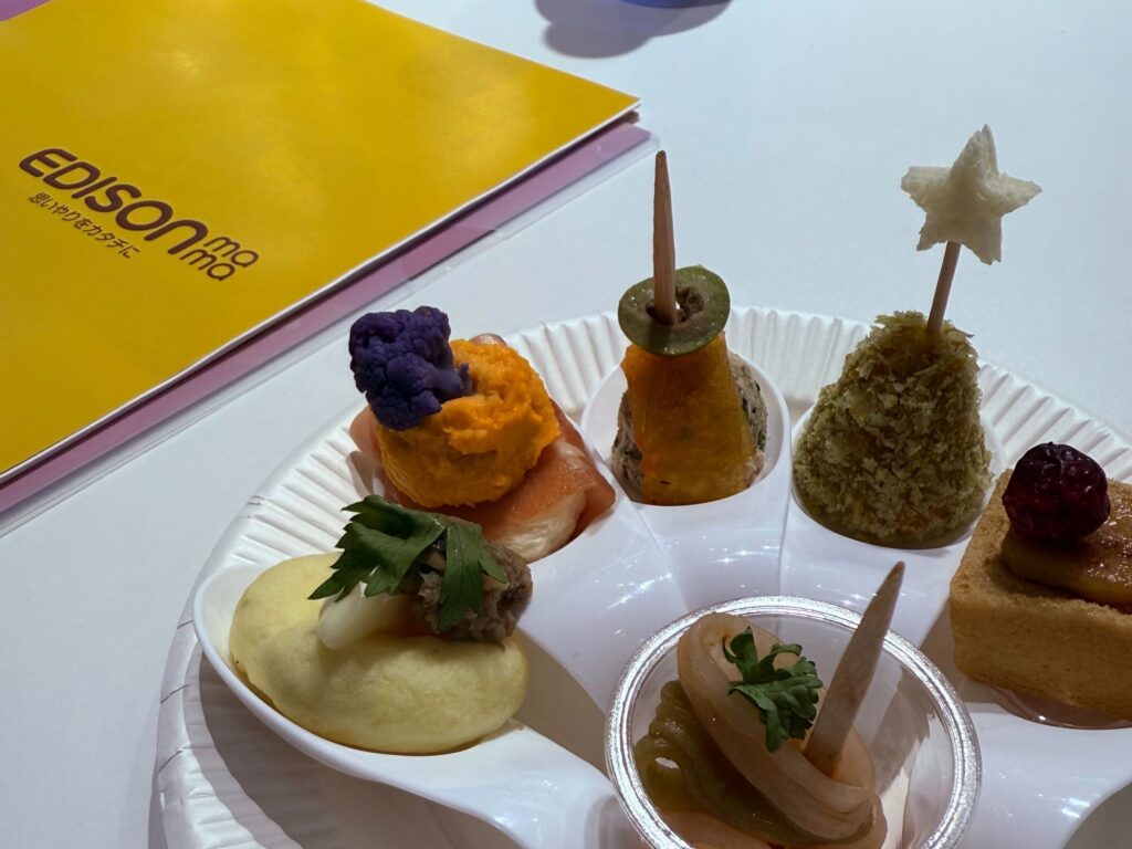 今回の展示会では、エジソンママの商品を使ったケータリングもあり、季節感のあるクリスマス仕様の演出、そして見た目も味わいも楽しいメニューが並びました。