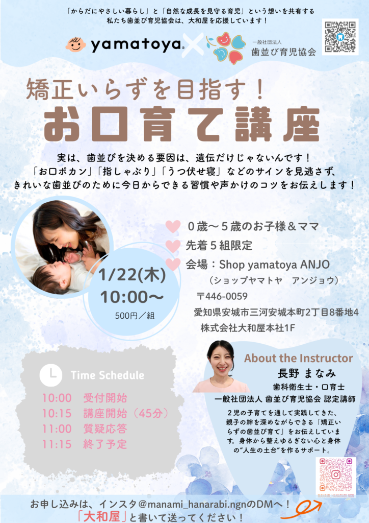 「矯正いらずを目指す お口育て講座」を開催します。